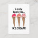 Ice Cream I Only Look For Ice Cream Business Card original design by Nisha Prabhu. Fully Customizable. Personalize with your details. Make a sweet impression with a business card that says it all! Ideal for ice cream enthusiasts, vendors, or entrepreneurs in the frozen treat industry, this card is more than just contact information—it's a statement. Featuring a fun and vibrant design, it captures the joy of ice cream and invites conversation. Whether you're networking at food festivals, connecting with suppliers, or simply sharing your passion with fellow ice cream lovers, this card will leave them craving more! Bold colours and playful graphics that reflect your love for ice cream.
