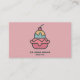 A business card in vintage pink and blue colours, with a design of a scoop of ice cream with a cherry on top. It will be suitable for Ice Cream Parlour or homemade sweet treats services. Fully customizable with your own information on the back, such as name or company, slogan, website, phone, address and, if you need, opening hours!