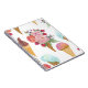 Watercolor painting seamless pattern with ice-cream, raspberries and rose flowers bouquet. Summer illustration