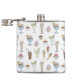 Deliciously cute, illustrated ice cream and cake collage on decorative hip flask.