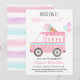 This cute invitation features a hand painted watercolor ice cream truck with ice cream treats and balloons in pastel colours.