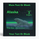 On the front: Another in the series of postage stamps for an independent Alaska. A peaceful moment in the long Arctic night. A Polar Bear rests at the edge of an open area in the pack ice. The Northern Lights glow in the distance; bright stars twinkle overhead. Text reading "Alaska," "Postage 3 Nuggets," "Polar Bear Ursus maritimus" also appears.