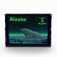 Another in the series of postage stamps for an independent Alaska. A peaceful moment in the long Arctic night. A Polar Bear rests at the edge of an open area in the pack ice. The Northern Lights glow in the distance; bright stars twinkle overhead. Text reading "Alaska," "Postage 3 Nuggets," "Polar Bear Ursus maritimus" also appears. Polar bears are endangered. How much longer will scenes like this be able to occur? Please help save Polar Bears from extinction.