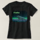 A peaceful moment in the long Arctic night. A Polar Bear rests at the edge of an open area in the pack ice. The Northern Lights glow in the distance; bright stars twinkle overhead. Text reading "Alaska" appears in glowing green and white. Polar bears are endangered. How much longer will scenes like this be able to occur? Please help save Polar Bears from extinction.