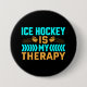 Hockey theme button with hockey pucks and text that reads Ice Hockey is My Therapy!