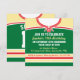 Personalized party invitiations made for hockey crazy kids and adults! Can be used for birthday's, bar mitzvah's, engagement and anniversary parties, and much more! Customize the back of the invite with your choice of name and jersey (age) number. The front of the invite is in the style of a hockey jersey complete with collar and lace. To change text and background colours and to add more lines of text, scroll to below the text boxes on the right and click on 'Click to customize further'. This jersey's colours are green, red and cream. If you don't see the colour scheme you want in my store, please use the 'Contact this Designer' link below and I will be happy to help.