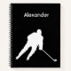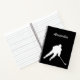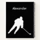 Black and white personalized hockey notebook with hockey player - a useful ice hockey gift to take notes after practice or create a journal.