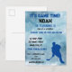 "Get ready for an exhilarating sports birthday event with our ice hockey player-themed invitation postcard.