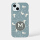 Ice skate and snowflake pattern on a blue grey background. Personalize this stylish phone case with your name and initial.