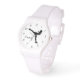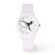 This watch features a black silhouette of an ice skater, with black numbers and customizable black text, on a customizable white background.