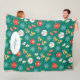 Ice Skates and Snowflakes Teal Monogram Pattern Fleece Blanket