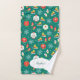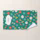 Add a festive custom touch to your home holiday bathroom Christmas decor with this fun teal pattern with ice skates, sweaters, snowflakes, and mittens. Add your family monogram initial for a personalized touch!