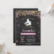 Ice Skating Birthday Party Pink Skate Invitation. Girl Birthday. Pink and Gold Glitter Snowflake. Winter Christmas Holiday. Chalkboard Background. Black and White. 1st 2nd 3rd 4th 5th 6th 7th 8th 9th 10th 11th 12th 13th 14th 15th, any age. For further customization, please click the "Customize it" button and use our design tool to modify this template.