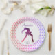 Modern ice skating birthday party plates with silhouette of girl figure skater and stars (Pink to purple).