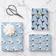 Ice Skating Design Wrapping Paper Set featuring ice skating images on icy blue background.