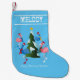 Ice skating flamingos wearing Santa hats, enjoying a day out circling a Christmas tree. This fun, adorable illustration will put a little tropical warmth into Christmas. Add your name to the stocking and make it uniquely yours. Merry Flocking Christmas!