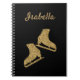 Gold personalized ice skating notebook for figure skater (girl or boy) - ice skate design - nice ice skating gift to take notes or create a diary.