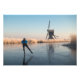 Photo print of an athlete ice skating on a frozen river past hoar-frosted reeds and a windmill on a beautiful winter morning in the Netherlands.
