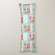 A blue body pillow with the pattern of an ice skating penguin . Great to celebrate the HOliday season . © ArianeC Illustrations