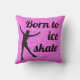 Square pink pillow for figure skater - great ice skating gift to decorate the bedroom of a skating fan!