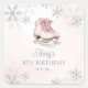 Ice Skating Pink Silver Glitter Snowflake Birthday Square Sticker