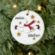 A snowman with a long red scarf ice skates while surrounded by golden stars and text reads "Aahhh...Winter!" on our Ice Skating Snowman keepsake holiday ornament.
