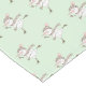 Adorable holiday table runner eatures hand drawn whimsical ice skating snowman on pastel green background