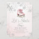 A beautiful ice-skating birthday invitation featuring soft pink tones, elegant silver glitter snowflakes, and watercolor ice skates. Perfect for winter birthdays and girls skating parties.