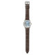 I was uncertain about the size being too small but it looks good. The case looks like aluminum (not shiny) and the time is easy to see. I changed the band because the leather doesn't go with my lifestyle.a. Exactly what I expected, nice yellow. It grabs peoples attention.