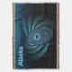 A blue-toned fractal image resembling a swirling group of whales under polar ice; perhaps beluga or minke whales which frequent the poles. Text reading "Alaska" appears in glowing blue and white.