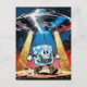An anthropomorphic ice cube wearing tactical gear is getting abducted by a UFO