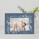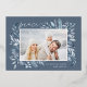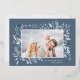 This simple and elegant nature-inspired holiday card features your favourite horizontal or landscape-oriented photo adorned at the corners with sprigs of graceful icy blue watercolor foliage with silver foil accents. "Peace" appears at the top left in chic handwritten script, with your names and the year at the bottom right. An elegant botanical design for your Christmas 2022 greetings.