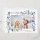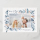This simple and elegant nature-inspired holiday card features your favourite horizontal or landscape-oriented photo adorned at the corners with sprigs of graceful icy blue watercolor foliage with rose gold foil accents. "Merry" appears at the top left in chic handwritten script lettering, with your names and the year at the bottom right. An elegant botanical design for your Christmas 2022 greetings.