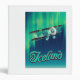 Iceland vintage style Travel poster of the Northern lights and a light aircraft flying past.