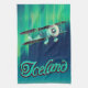 Iceland vintage style Travel poster of the Northern lights and a light aircraft flying past.