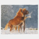 Two Icelandic horses, a foal and its mommy playing snowball fight in a snowy landscape, cute ponies photographed by Katho Menden. This soft and cozy fleece blanket is a gift idea for horselovers.