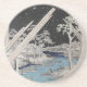 A snow scene: Fukagawa kiba, “Lumberyard, Fukagawa” from Edo meisho hyakkei, “The Hundred Famous Views of Edo.” Published by Uoya Eikichi between Ansei 3 and 5 (1856 – 58). This design dated Dragon 8 (1856). Wood was in strong demand in Edo as there were many fires, indeed, they were called the “flowers of Edo.”