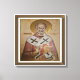 Icon of the Saint Nicholas. Beautiful design of the icon of the Saint Nicholas with a wood-colored frame and letters printed in gold.