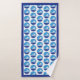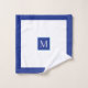Icône nager sur un ensemble de serviettes de bain bleu cercle qui affiche le motif d'une icône blanche minimaliste d'un nageur sur un cercle bleu-mer et ciel deux tons et autour d'elle une bordure bleue. Le linge de toilette est blanc avec votre monogramme tandis que le linge de toilette comprend un motif rayé bleu deux tons.