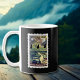 Enjoy your cup of joe in this historic Alaska Highway from a 1942 vintage postage stamp design with a rugged mountain landscape giving an explorational adventure vibe.