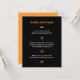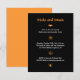 A Halloween invitation that uses iconic symbols of Halloween as orange accents: a bat, a spider web, a jack o'lantern and a spider. Your customized party information in white is separated by the icons. The orange back is left blank so you can add extra information if you like. Available in matching favours and postage.