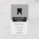 A stylized rich black tooth sits against a subtle pinstriped charcoal grey background. Perfect for dentists, hygienists or just about any business dealing with teeth. Leave the back as is with appointment information or customize it to your liking. Available in alternate colours with matching products.
