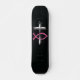 The Icthus & Cross design is a simple 3d metallic cross on a black background with a pink icthus in the central foreground. It is a simple and wordless statement of faith that goes with you even as you hit the streets or the skate park.