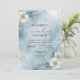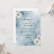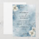 A delicate watercolor wash in cool blues creates a serene winter wonderland backdrop. Subtle floral accents and frosty branches evoke an ethereal, elegant atmosphere perfect for a winter celebration.