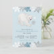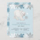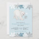 Throw the cutest winter polar bear themed baby shower ever with this adorable personalized baby shower invitation. These personalize baby shower invitations are fully customizable! You can edit the text by clicking "personalize this template". This polar bear baby shower invite features an elegant blue, white, and silver glitter snowflake border as well as an original polar bear illustration by OhMyStarling. The winter baby shower card has an icy blue background that is great for an arctic animal themed baby shower party. The back of these baby shower party invitations have a blue, white, and silver glitter snowflake repeating pattern.