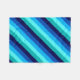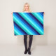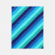 A small sized fleece blanket featuring a cool pattern design of diagonal stripes in navy blue, cobalt blue, sky blue, icy mint teal, and light turquoise.