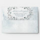 An icy winter dusty blue and white snowflake winter scene featuring winter berries and winter greenery, delicate and pretty, this envelope is covered all over, including inside, with this wintery scene.