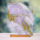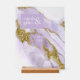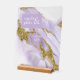 Ce design personnalisé avec une encre d'alcool abstraite dans les tons de lavande douce à violet lilas avec des accents dorés, est parfait pour un thème de mariage romantique et élégant. Le panneau mariage acrylique ci-dessous présente un texte unique "Cartes et Cadeaux" et fournit un modèle pour ajouter facilement vos initiales, la date du mariage et le message de remerciement. Recherchez ID990 pour voir d'autres pièces dans ce jeu de mariages coordonné.