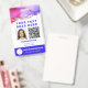 Modifiez facilement ce modèle pour télécharger votre propre photo d'identité, vaccin, code à barres ou code QR et vos informations personnelles. Idéal pour tout travailleur de soins, entreprise de soins à domicile ou travailleur indépendant. Plus les informations de 'gentiment retourner' sur le dos. Art abstrait unique avec des teintes d'aquarelle rose, violet et or. ID photo travail QR Code Pink Purple Badge.