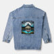 Camping themed jean jacket. Pretty ai art with a tent reflecting in the blue water.